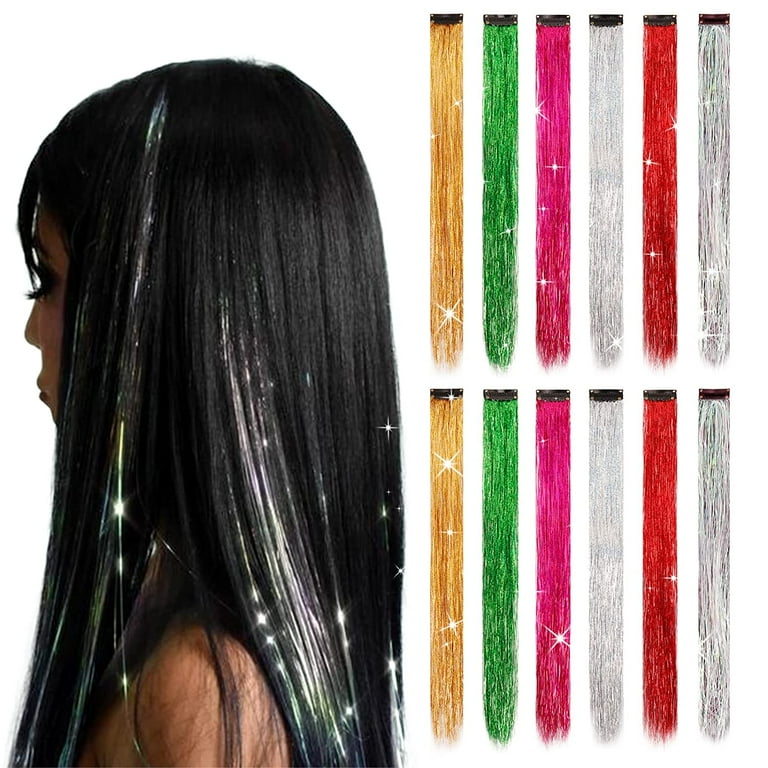Clip In Hair Tinsel 20 Inch Fairy Tinsel Hair Extensions With Tool 6 Color 2400 Strands Glitter Colorful 12pcs Sparkling Shiny Hair Tinsel For Girl Xmas New Year Party Walmart Com
